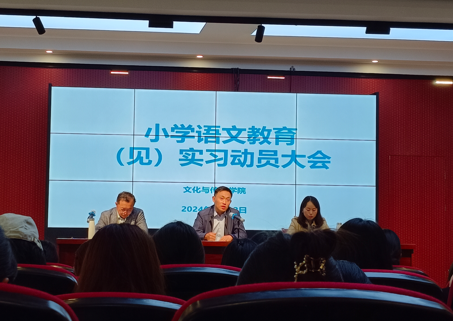 本网讯 为帮助(见)实习学生明确实习的目的,了解实习的各项要求,做好(见)实习学生的安全教育和管理工作,4月12日上午9时,文化与传媒学院召开(见)实习生动员大会。文化与传媒学院行政工作负责人潘杨、教学工作负责人高婷、各班辅导员及各实习点带队、指导老师出席了会议,会议由中文教研室主任金勇主持。2022级和2023级小学语文教育各班(见)实习学生全体参加。