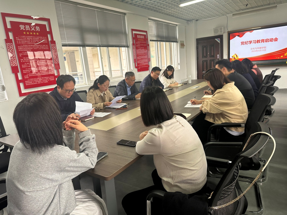 4月19日上午,文化与传媒学院在D401会议室召开党纪学习教育启动会。校党委委员、工会主席吴志华参加会议,会议由学院党总支书记刘明娟主持,文化与传媒学院全体教师党员参加会议。