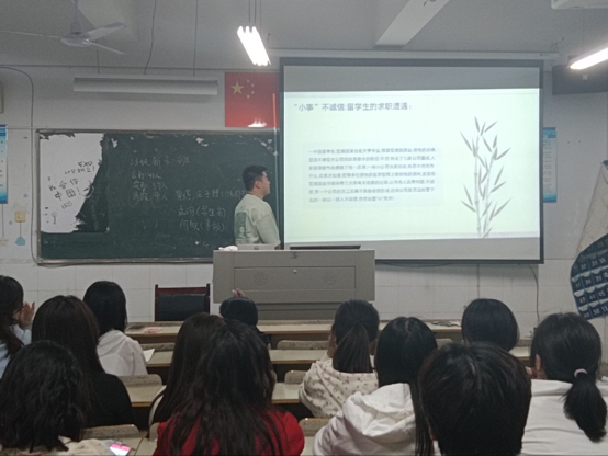 主题班会上,相关人员详细介绍了生源地信用助学贷款、各类奖助学金等学生资助政策,指导班级相关学生在相应时间积极申请办理,助力他们成长成才。各班级通过图片展示、案例讲解等形式,宣讲诚实守信和励志成才典型事迹,引导大家要树立诚信观念,倡导契约精神,信守承诺,履行义务,引导他们树立正确的消费观、价值观。