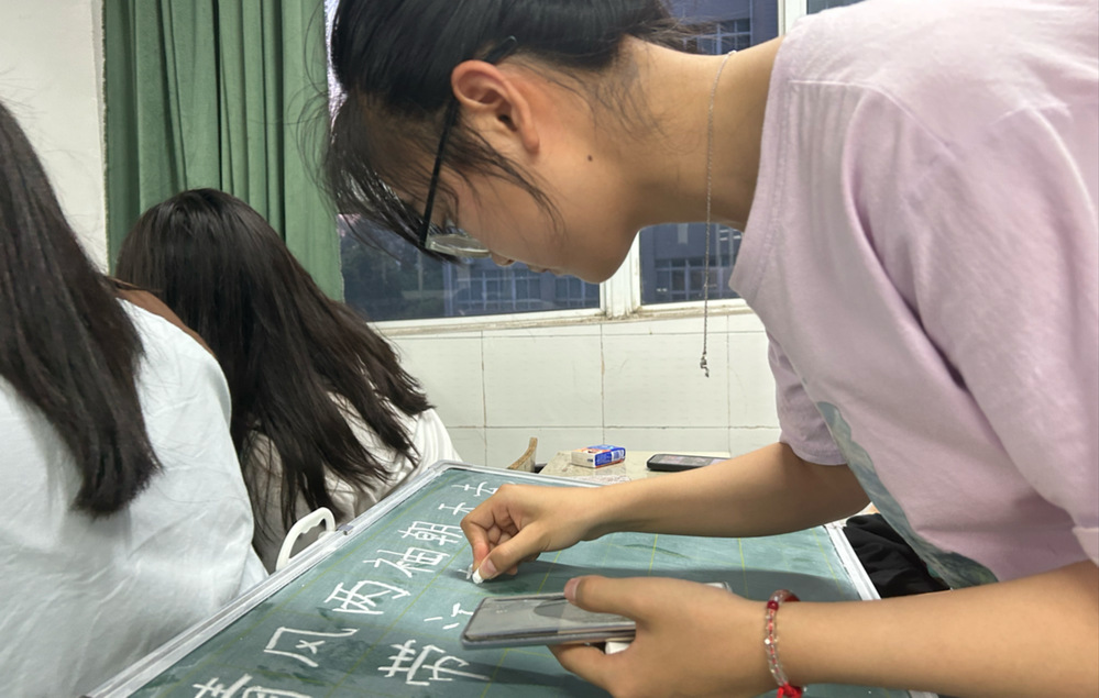 晚7时,比赛正式开始。比赛采用硬笔和粉笔两种书写形式,参赛者需誊写指定的经典诗文,展现对汉字书写规范、结构、笔画的掌握程度。比赛过程中,选手们严谨认真,有的参赛者行书流畅,展现了汉字的苍劲之美;有的参赛者楷书工整,展现了汉字的端庄之美。比赛过程有序,洋溢着浓厚的文化气息。