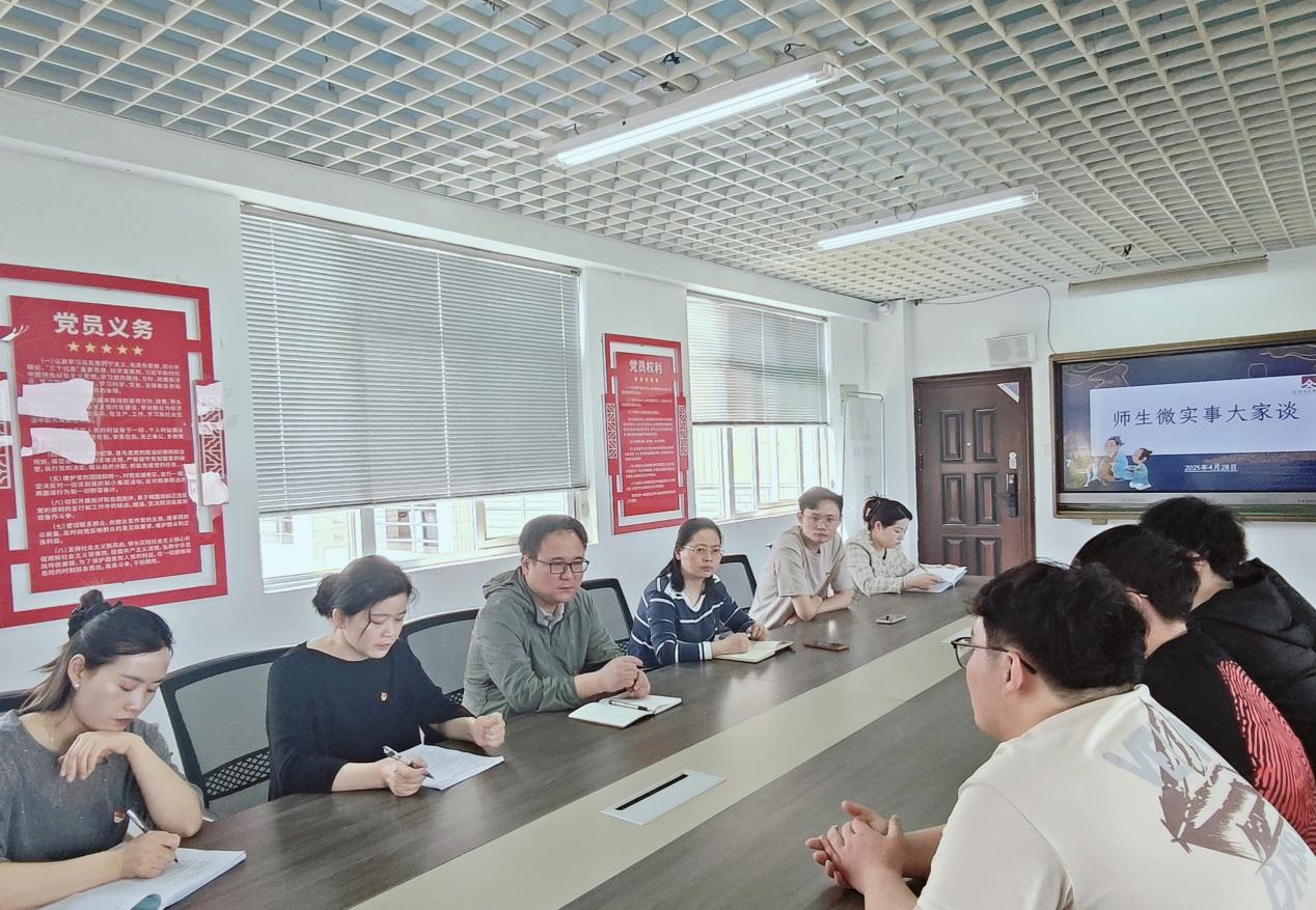 为切实打通服务学生“最后一公里”,努力实现他们办事“零距离”,根据学院“党建引领往前赶”专项行动工作安排,4月28日上午,文化与传媒学院开展了“师生微实事大家谈”活动。学院党总支书记刘明娟、副书记戴小兵,全体辅导员和学生代表参与此次活动。